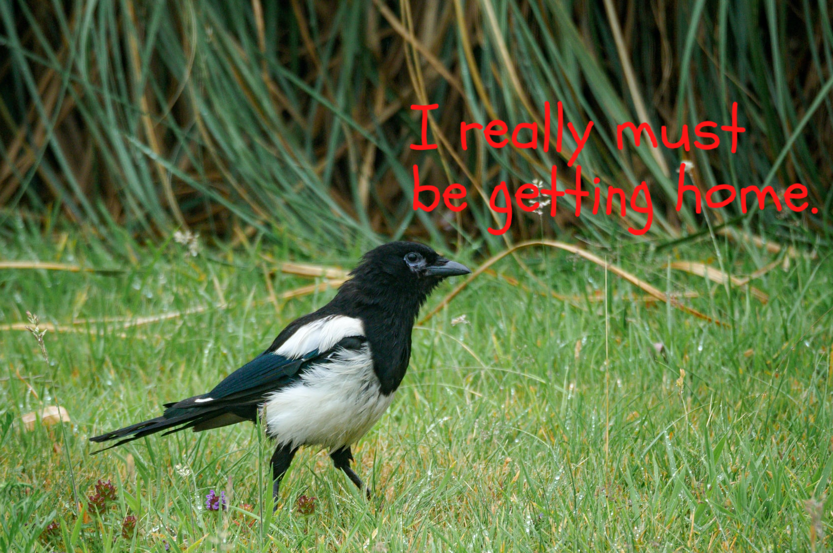 hurry off는 ‘서둘러 떠나다, 급히 떠나다’라는 뜻, magpie는 ‘까치’라는 뜻, call out은 ‘부르다, 호출하다’라는 뜻, pretext는 ‘구실, 핑계’라는 뜻이다.